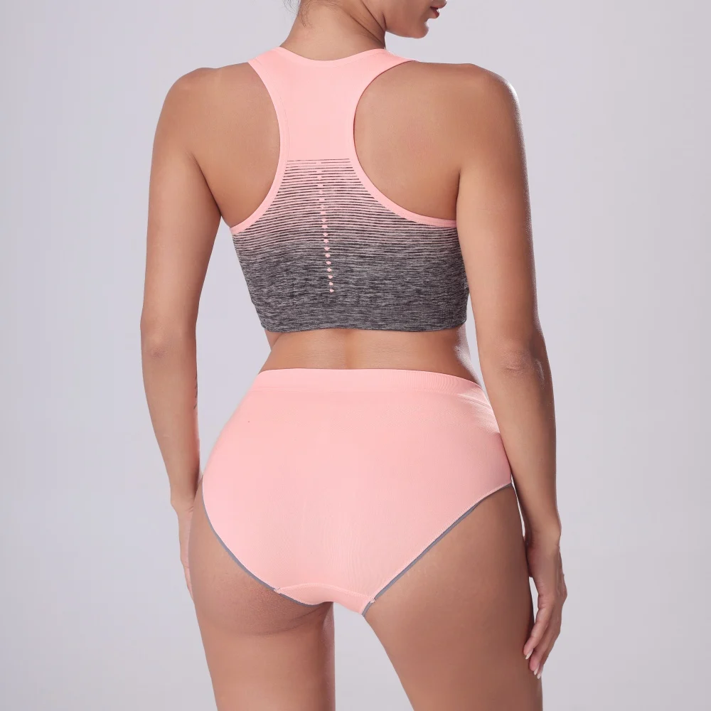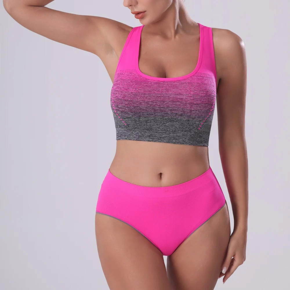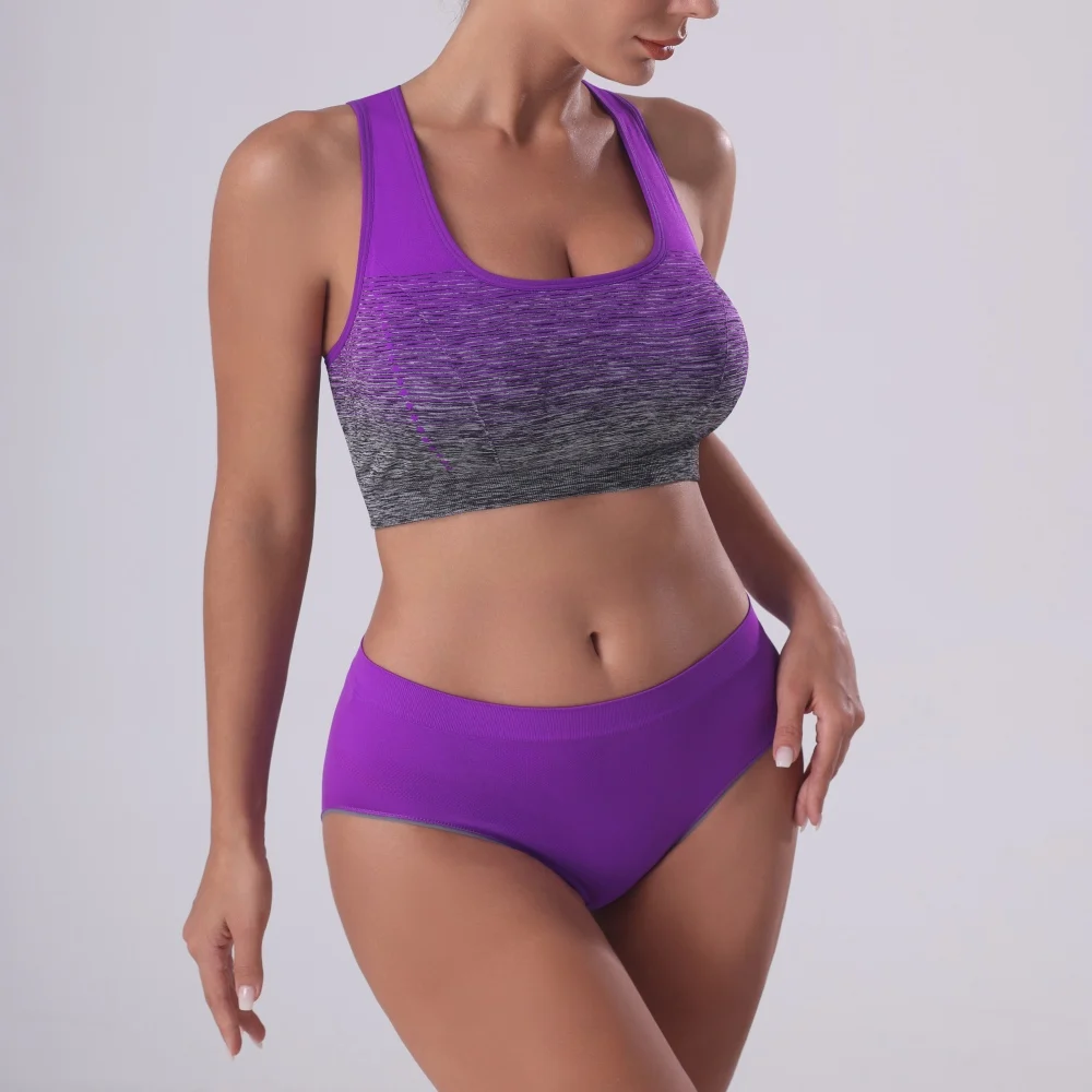 Women’s Soft Gradient Medium Support Yoga Sports Bra Brief Set