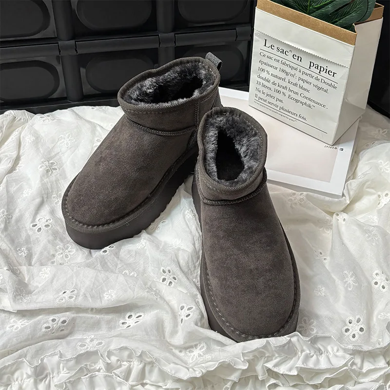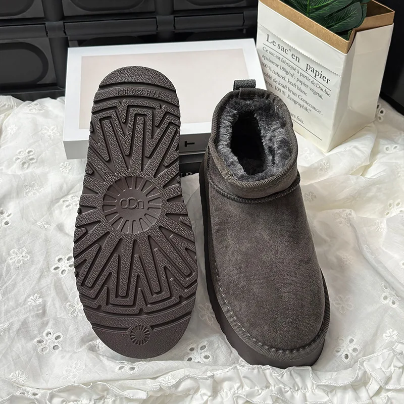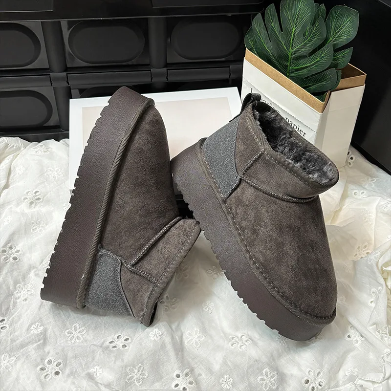 With a trendy fluffy texture and belt decoration, these boots add a stylish touch to your winter wardrobe.
